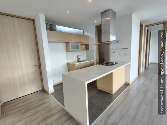Sala comedor, 1 alcoba, cocina integral, pisos en porcelanato y madera laminada, 2 baños, red de gas, balcón, 2 parqueaderos lineal y cuarto útil.